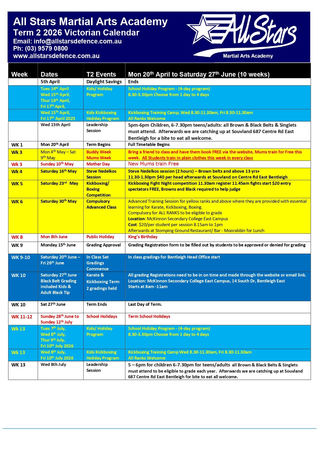 Term 2 2026 Monday 20th April to Saturday 27th June