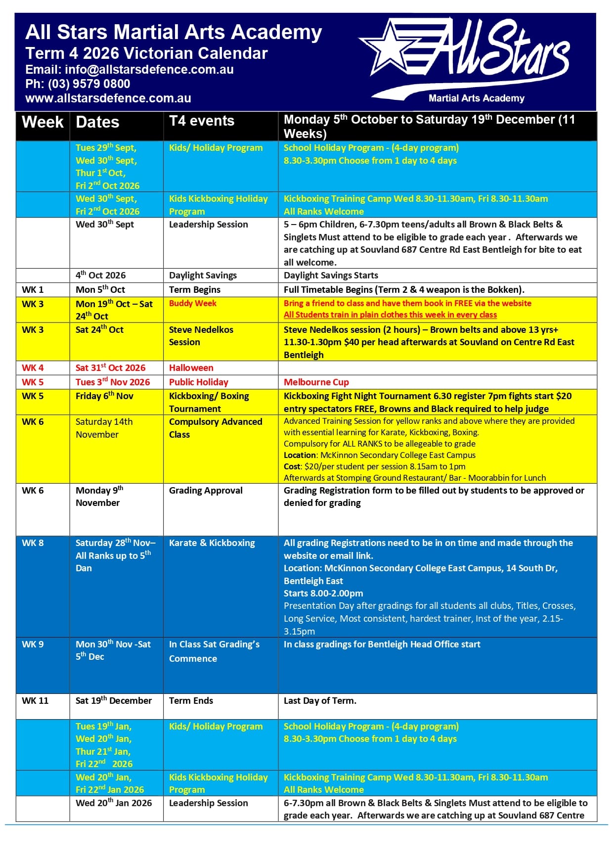 Term 4 2025 Monday 6th October to Saturday 20th December