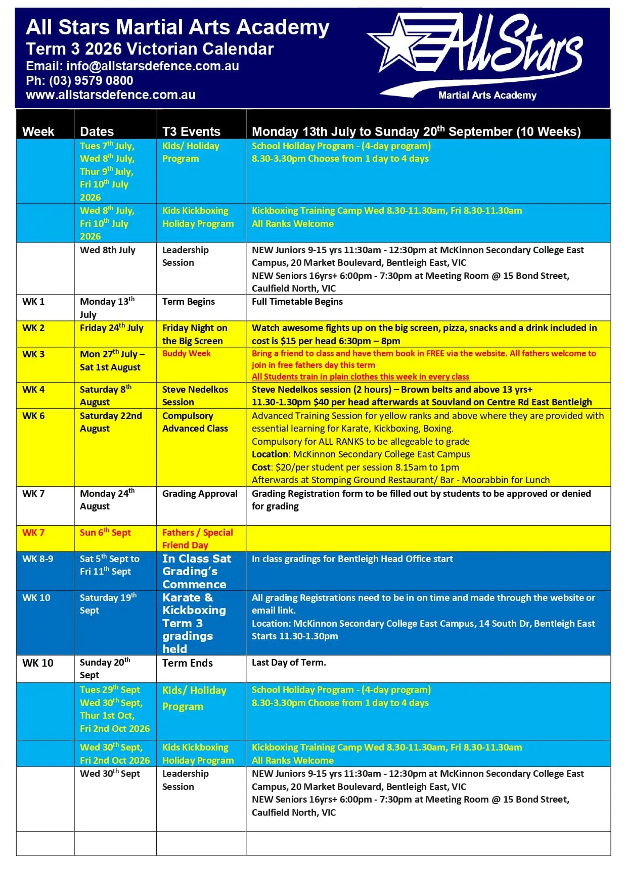 Term 3 2026 Monday 13th July to Sunday 20th September