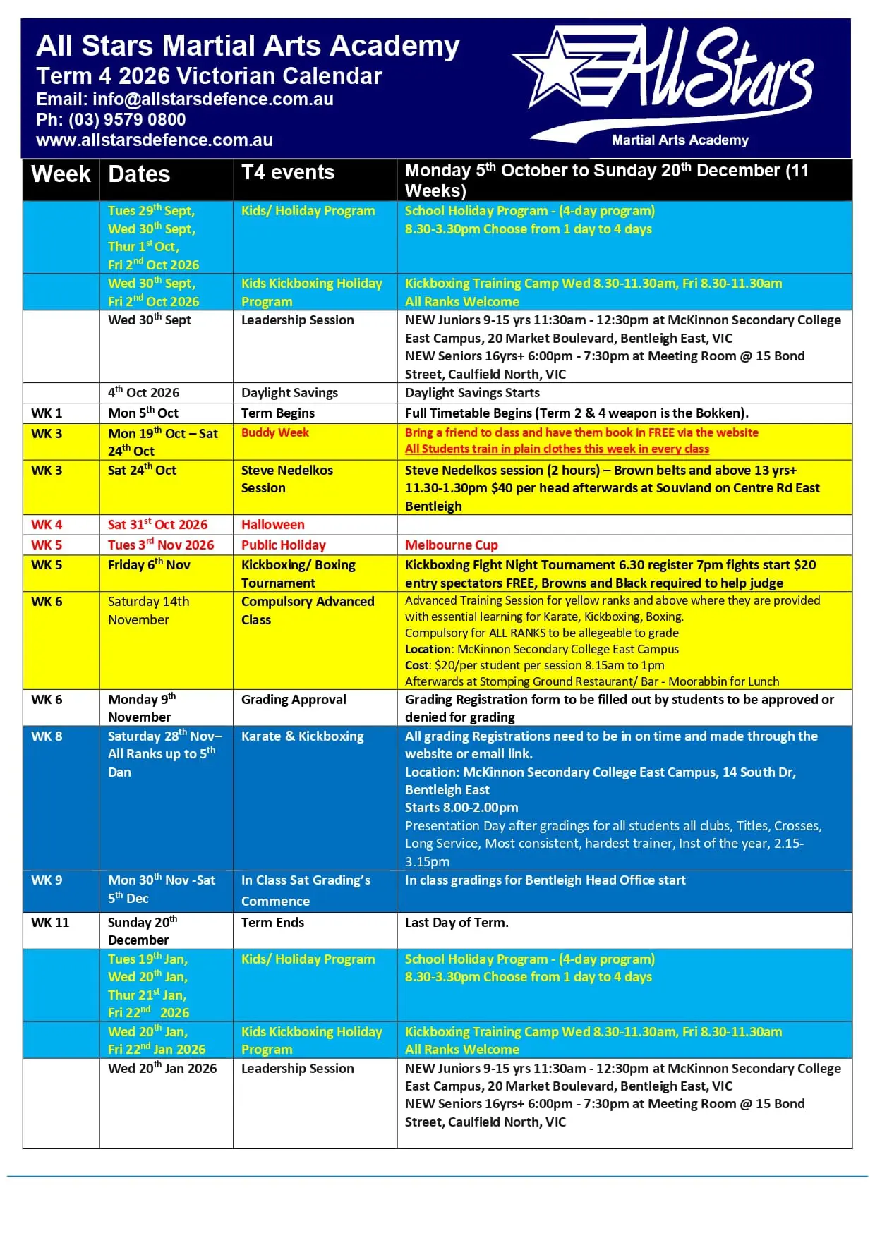 Term 4 2026 Monday 5th October to Sunday 20th December